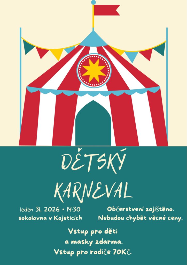 Obec Kojetice srdečně zve občany na dětský karneval, který se uskuteční v sobotu 31. ledna 2026 ve 14:30 hod. v místní sokolovně. Občerstvení a věcné ceny zajištěny.
