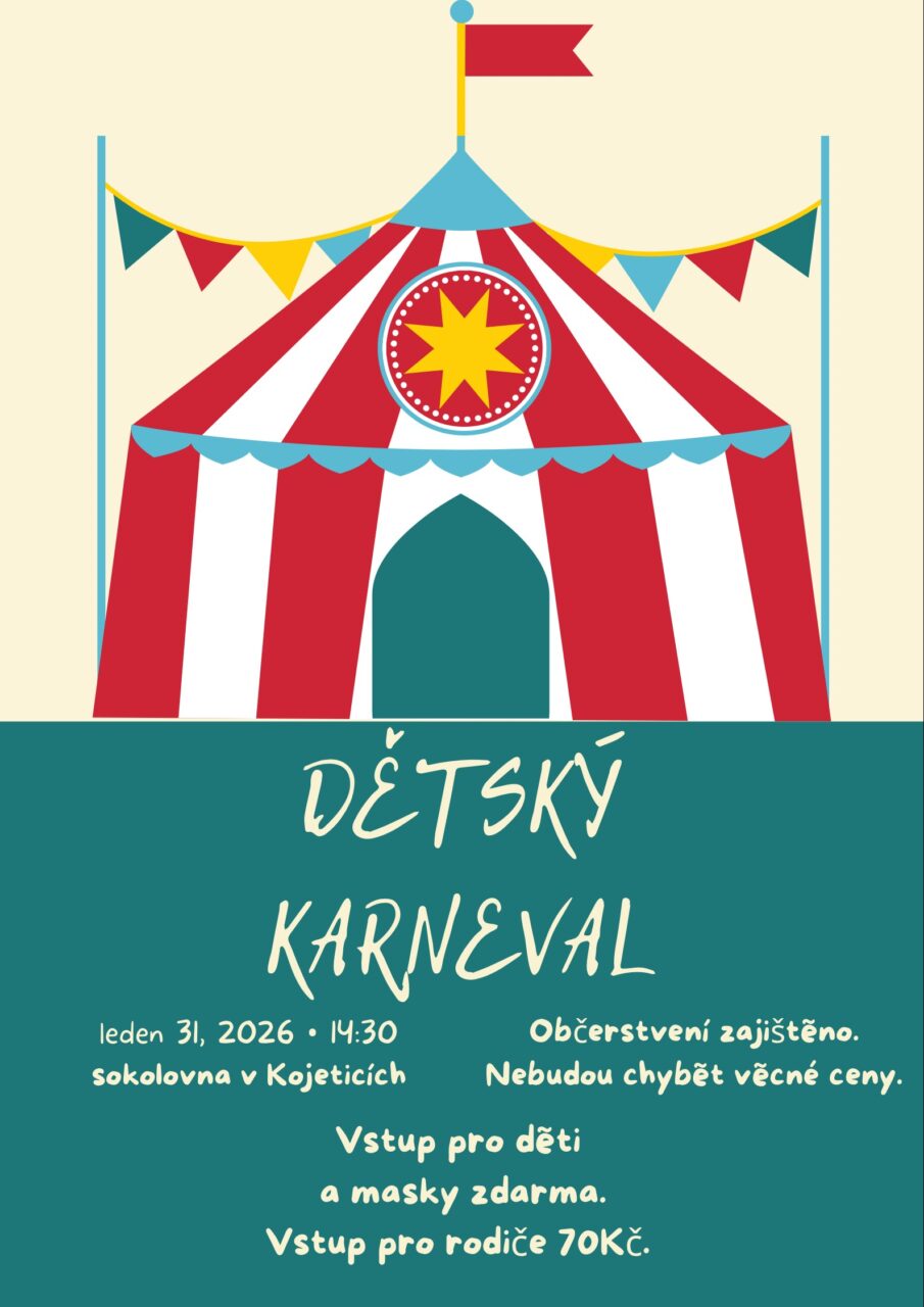 Obec Kojetice srdečně zve občany na dětský karneval, který se uskuteční v sobotu 31. ledna 2026 ve 14:30 hod. v místní sokolovně. Občerstvení a věcné ceny zajištěny.
