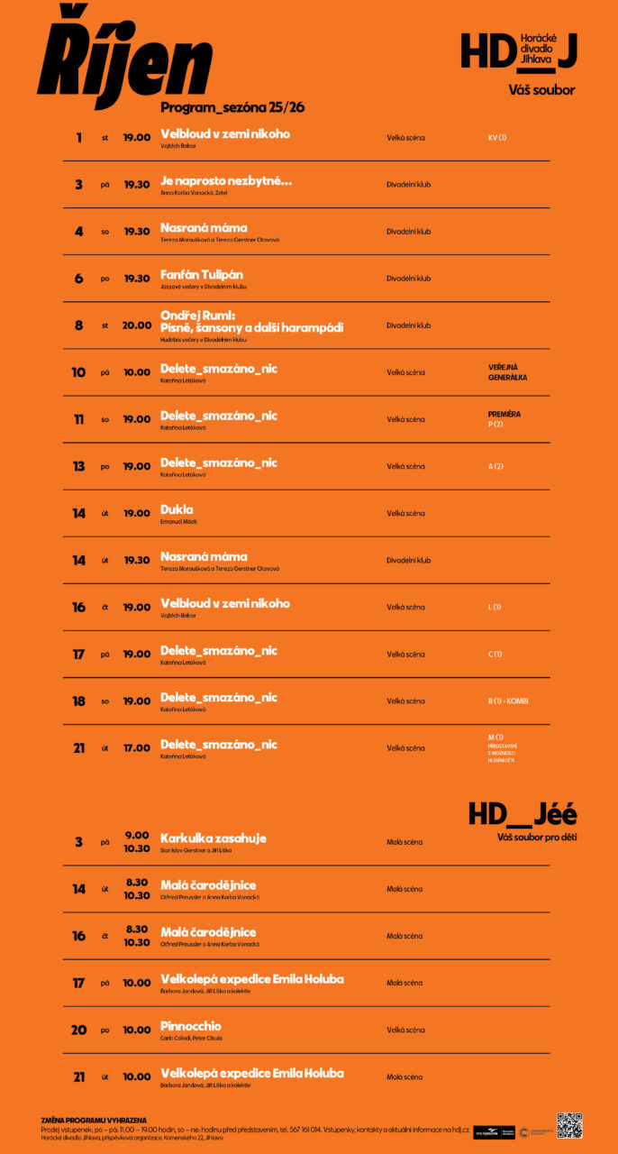 Program Horáckého divadla Jihlava – říjen
